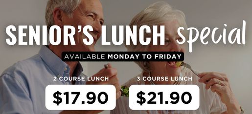 Seniors can enjoy a 2 or 3 course lunch including a complimentary house wine, soft drink or coffee!